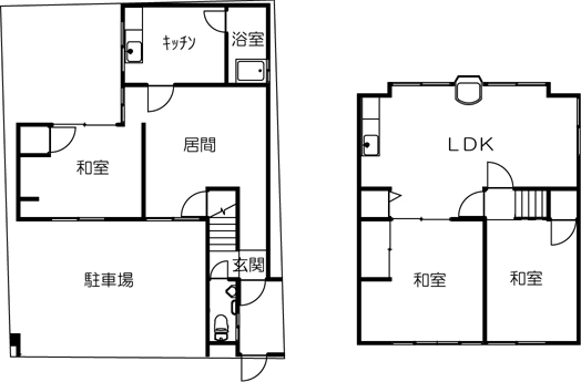 何回か増改築をして、1Fに親1人、2Fに息子の家族4人が暮らす家。