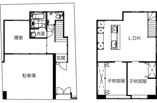 一世帯になったので、1Fを夫婦の寝室に、2FをLDKと子供部屋にしました。