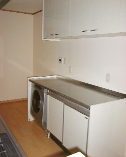 左手にはキッチンと同じ幅の作業台があります。
